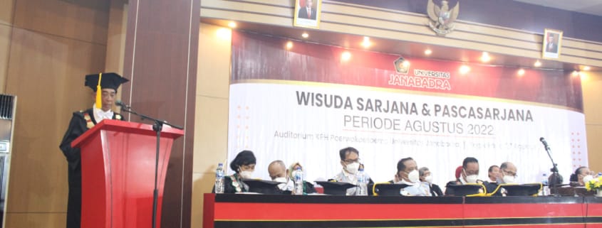 Pada periode ini Universitas Janabadra mewisuda 375 orang sarjana S 1 321 orang dan S 2 54 orang , yang terdiri dari : Sarjana Hukum S 1 = 63 orang, Magister Hukum S 2 = 24 orang, Sarjana Ekonomi S 1 = 156 orang, Magister Ekonomi S 2 = 22 orang, Sarjana Teknik S 1 = 81 orang, Magister Teknik Sipil = 8 orang, Sarjana Pertanian S 1 = 21 orang, Indeks prestasi tertinggi diraih oleh sdr/i . Reny Ferawati, S.P. dari Fakultas Pertanian, Program Studi Agribisnis,angkatan tahun 2018. Pada wisuda periode Agustus 2022 ini, terdapat 127 orang lulus dengan predikat cumlaude (dengan pujian), dan kepada wisudawan/wisudawati dengan lulus cumlaude saya ucapkan selamat atas prestasinya.
