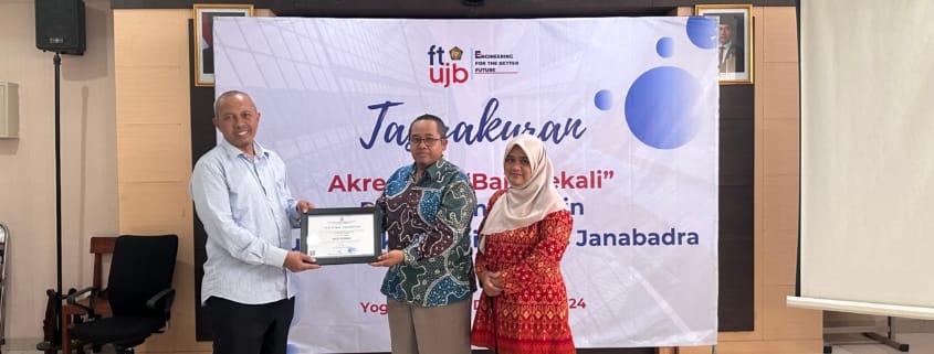 Program Studi Teknik Mesin, Fakultas Teknik, Universitas Janabadra Yogyakarta, menggelar acara tasyakuran pada Senin, 20 Desember 2024 untuk pencapaian akreditasi “Baik Sekali” yang diberikan oleh Lembaga Akreditasi Mandiri Teknik (LAM Teknik). Acara yang berlangsung di ruang multi purpose Universitas Janabadra Yogyakarta. Acara ini dihadiri oleh dosen, tenaga pendidik serta beberapa mahasiswa fakultas teknik Universitas Janabadra Yogyakarta