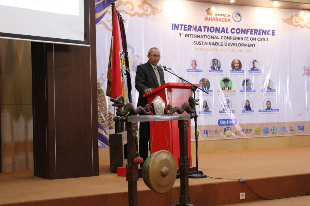 Rangkaian kegiatan The 7Th International Conference on CSR 2024 diawali dengan Welcome Speech (ucapan selamat datang) dari Rektor Universitas Janabadra Yogyakarta Dr. Risdiyanto, ST., MT., dilanjutnya Opening Speech dari Conference Chair Dr. Erni Umi Hassanah, M.Si serta Opening Speech dari President, SERD Dr. Vikas Kumar.
