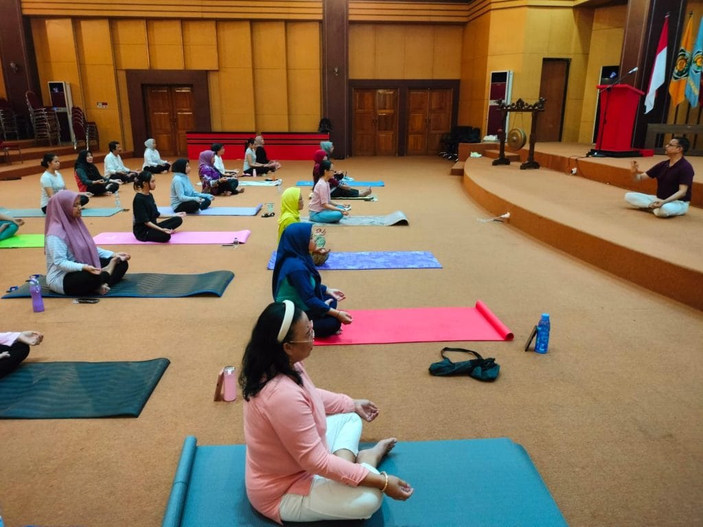 Rangkaian kegiatan The 7Th International Conference on CRS 2024 di Universitas Janabadra Yogyakarta, Selasa (11/06/2024) diselenggarakan kuliah dosen tamu (guest lecture) dan Yoga secara parallel di beberapa tempat terpisah yang berlangsung jam 15:30-18:00 WIB. Sementara di ruang kelas mahasiswa mengikuti kuliah dosen tamu, sebagian para dosen dan karyawan mengikuti Yoga yang dipandu langsung oleh instruktur Prof. Shiv Ranjan dari India. Dalam Yoga ini peserta diajarkan teknik-teknik bagaimana melakukan relaksasi untuk meningkatkan kesehatan fisik, kejernihan mental dan kurangi stress.