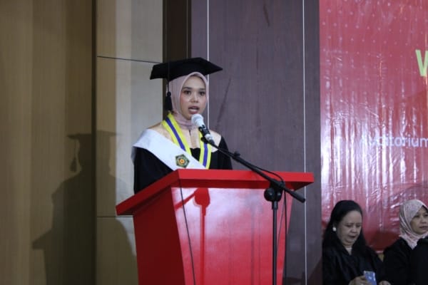 Dalam sambutan perwakilan wisudawan, Lilis Septiana mengajak rekan-rekannya untuk melangkah ke masa depan dengan semangat optimisme dan tekad yang kuat. “Untuk berkontribusi dalam mewujudkan generasi emas 2045, kita harus terus belajar dan beradaptasi dengan perkembangan zaman,” tuturnya penuh inspirasi.