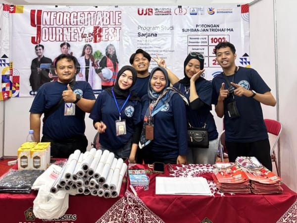 Tim Promosi Universitas Janabadra Yogyakarta mengikuti kegiatan Edu Expo yang diselenggarakan oleh SMA Negeri 1 Magelang dan berlangsung di Gedung Tri Bhakti Magelang pada tanggal 10 Januari 2026.