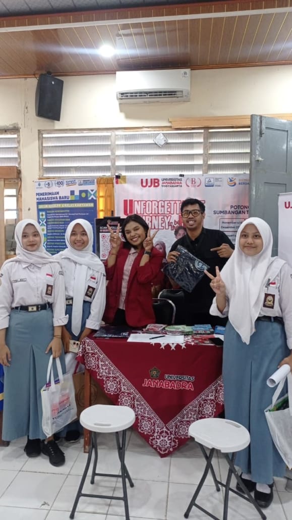 Tim Promosi Universitas Janabadra Yogyakarta mengikuti kegiatan Eduexpo di SMA Negeri 1 Temon yang berlangsung pada hari Kamis, 12 Februari 2026.