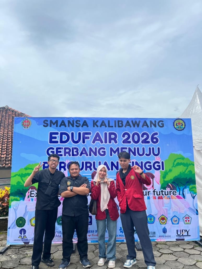 Tim Promosi Universitas Janabadra Yogyakarta mengikuti kegiatan Edufair di SMA Negeri 1 Kalibawang yang berlangsung pada hari Kamis, 22 Januari 2026.